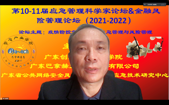 本届论坛首席科学家、大会荣誉主席、香港城市大学张振刚教授代表国内应急管理科学家致辞