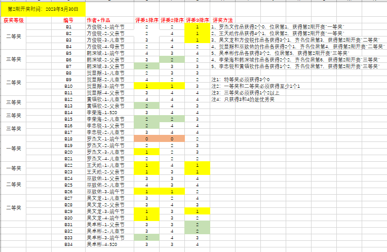 经来自全国不同的3位专家的匿名评奖结果,报名参加“首届巴拿赫计算机(图片设计)大赛”的11位同学共制作了34张图片,最后获奖名次如下: