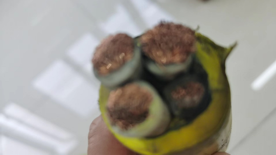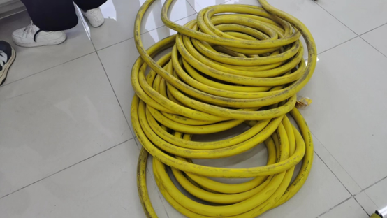 这种电缆比我们日常见到的电缆要粗得一点,我们日常见到的电缆里面可能只有3个接线头(2根电线,1根地线)。但这种井下排水系统的电缆里面有4个接线头(3根电线,1根地线),如下图所示。