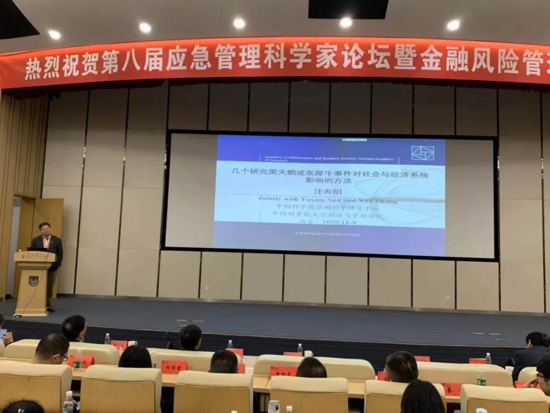 2019年11月9-10日,由南京工业大学、广东巴拿赫大数据科技有限公司、广东省公共网络安全风险评价与预警应急技术研究中心等联合主办,南京工业大学经济与管理学院、暨南大学金融工程研究所和南京工业大学大数据决策与社会绩效评估研究中心等联合承办的“第八届应急管理科学家论坛与金融风险管理论坛(2019)”在南京工业大学隆重举行,来自海内外48所高校、政府和企业的院士、著名中青年科学家、著名企业家、老师和硕博士研究生等共200余人出席论坛。论坛创始人庞素琳教授主持开幕式。南京工业大学党委副书记崔益虎教授、中国科学院大学经济与管理学院院长汪寿阳院士、北海市长青老龄活动中心主任王秀仲分别在开幕式致辞!湖南工商大学校长陈晓红院士担任学术委员会主席。