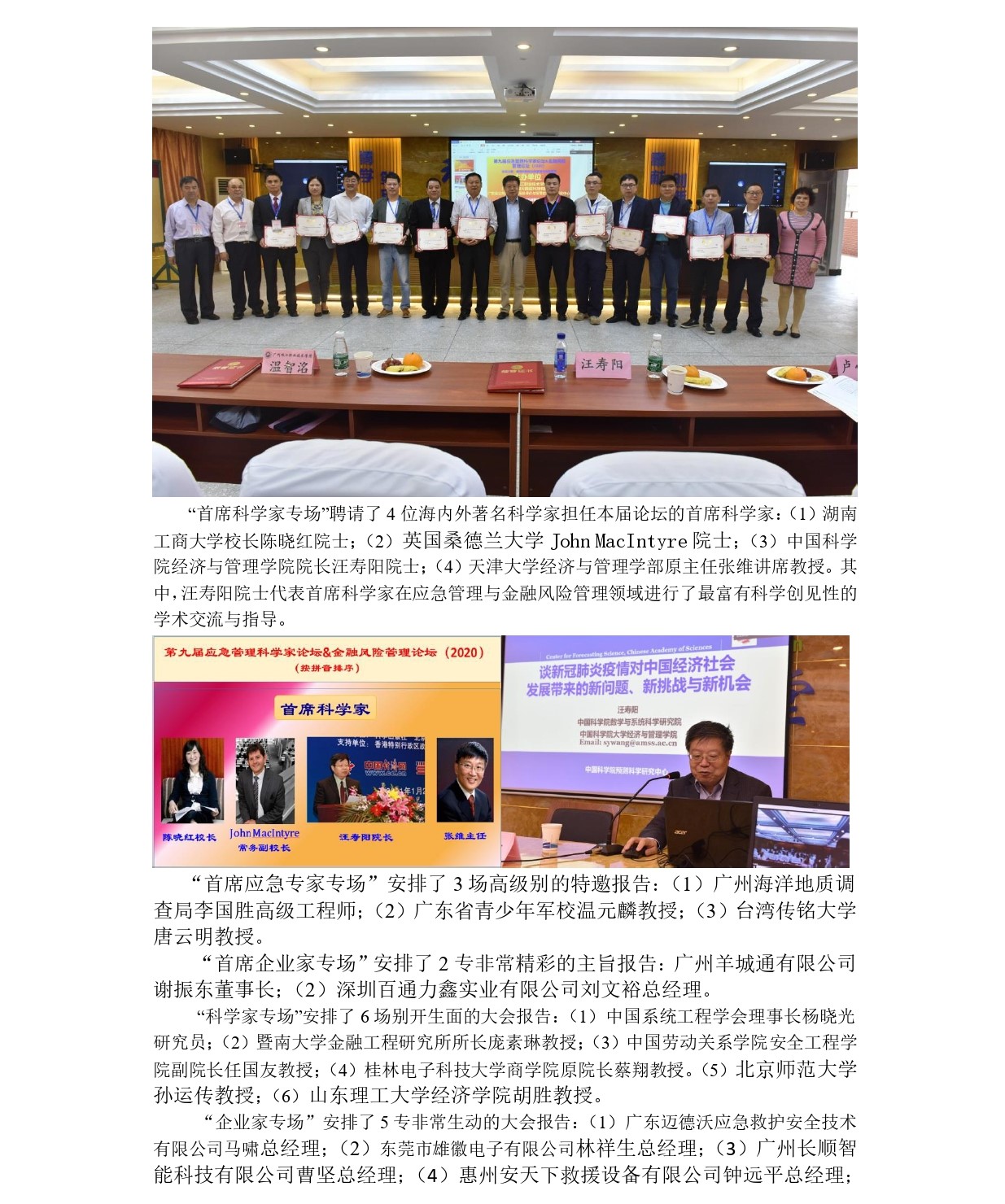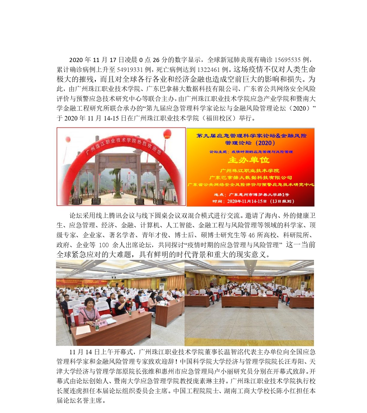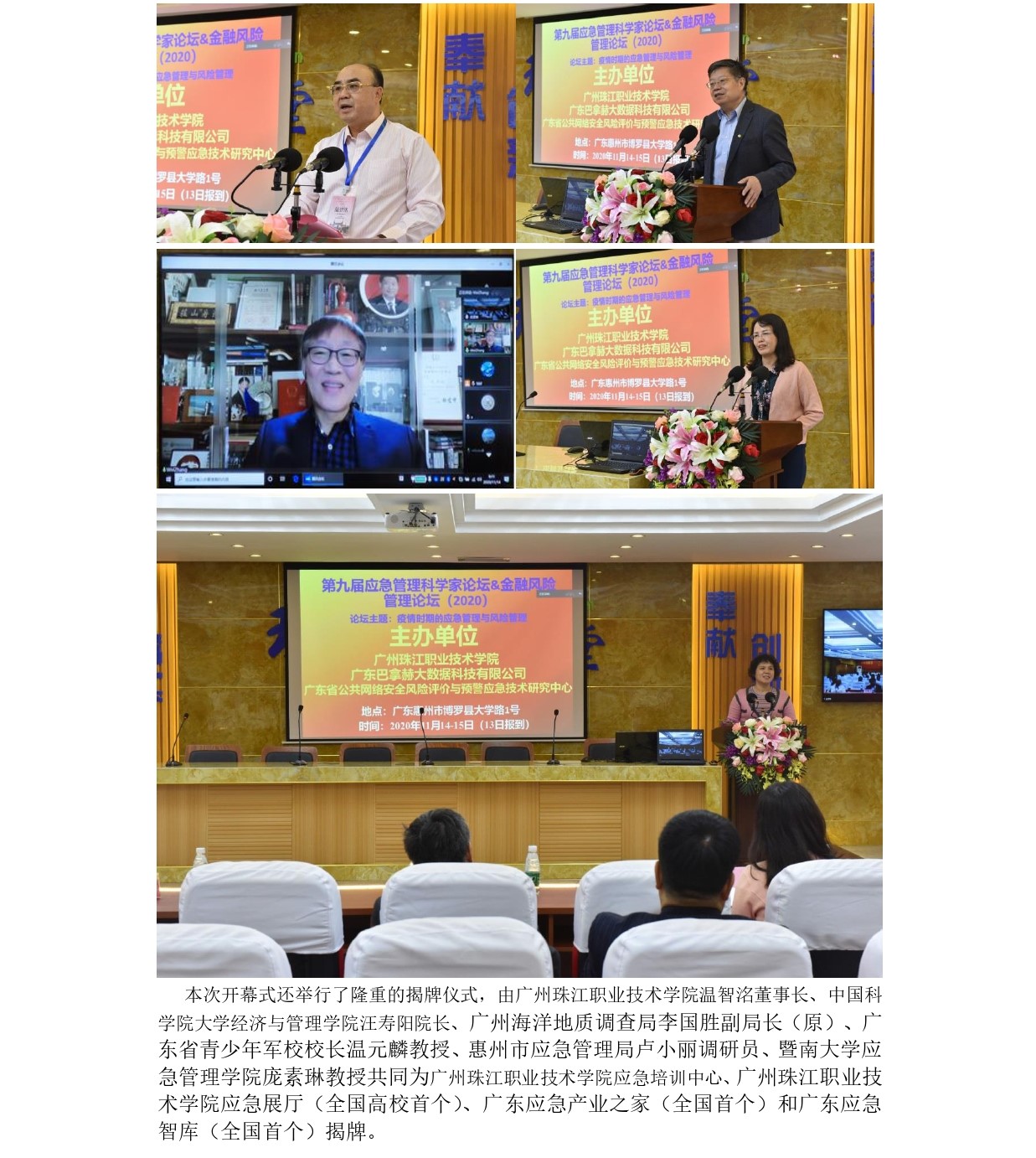 第九届应急管理科学家论坛暨金融风险管理论坛(2020)在惠州博罗成功举办
