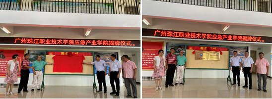 广州珠江职业技术学院董事长温智洺、惠州市应急管理局副局长李正程、广东气象局(原)副局长邹建军、广州海洋地质调查局(原)副局长李国胜、广州珠江职业技术学院副校长李东和暨南大学应急管理学院教授庞素琳共同为全国首个“应急产业学院”和“巴拿赫一键求救平安校园”揭牌。揭牌仪式由广州珠江职业技术学院党委副书记夏连虎主持。