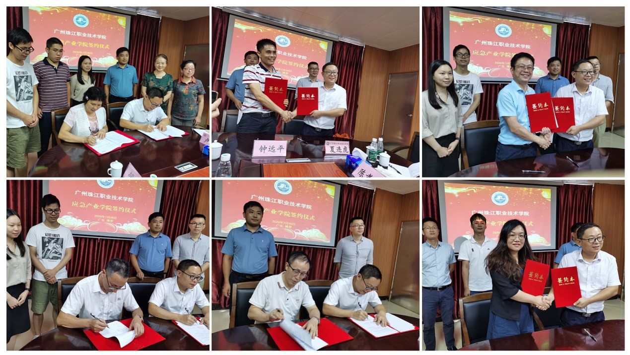 2020年7月28日下午,由广州珠江职业技术学院与广东巴拿赫大数据科技有限公司联合共建的全国首个应急产业学院在广州珠江职业技术学院隆重揭牌。惠州市应急局、广东气象局、广州海洋地质调查局、广东省应急产业协会、暨南大学应急管理学院等政府、高校、企业近30位领导、专家、企业家和硕博士生出席揭牌仪式。