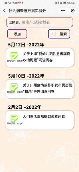 《社会调查与数据实验分析平台》旨在为社会、团体包括个人进行社会调查,提供调查问卷录入、问卷答题以及数据分析。欢迎使用者注册和登录,发布各类社会调查问卷,以助论文写作或项目研究,为政府决策提供参考依据。同时欢迎社会各界人士参与各类问卷答题,表达个人观点、看法、感受、经历、情绪或心态。本平台所有调查问卷均采用匿名参与方式,充分保护参与者的个人隐私信息,请参与者放心填写每个调查问卷。感谢支持与配合!